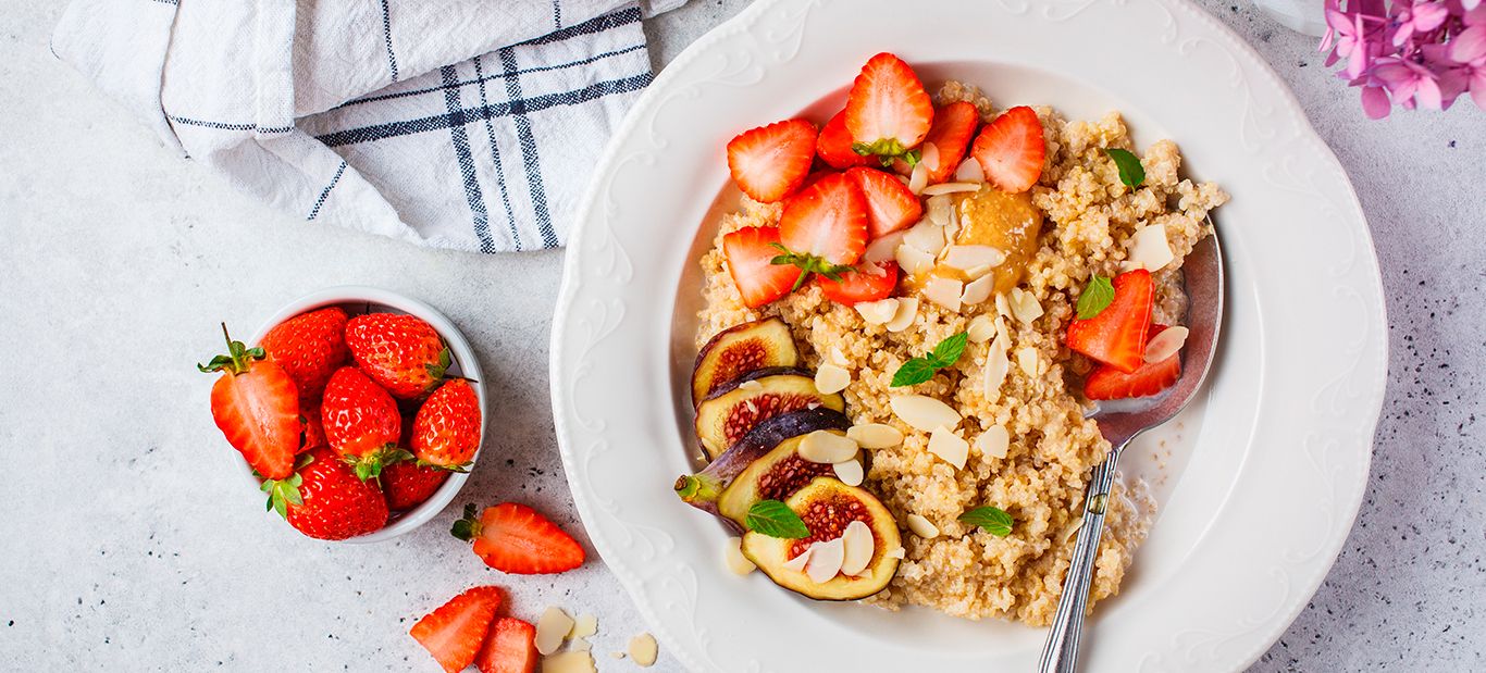 Papas de quinoa com amêndoa e fruta fresca